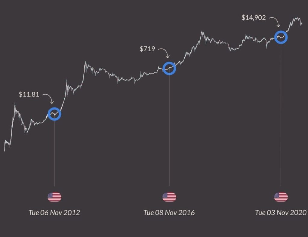 Historien behöver inte nödvändigtvis upprepa sig, men den rimmar onekligen. Bitcoin bryr sig inte om vem som är USAs president. På lång sikt ökar Bitcoin i värde, oavsett.
